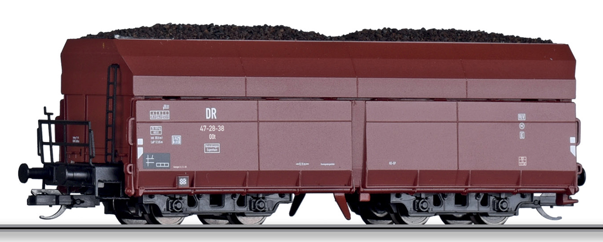 | nákladní samovýsypný vůz červenohnědý ložený uhlím |