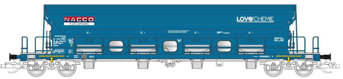 | • Tadns | - | se samočinným vykládáním vlastní gravitací zboží, dávkováním, podle volby oboustranně, vysoko položený výsypný otvor |