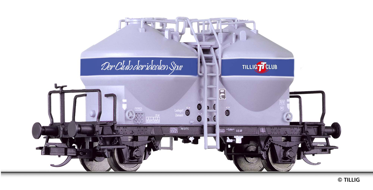 | samovýsypný nákladní vůz šedý s reklamním potiskem „TILLIG-TT-CLUB“ |