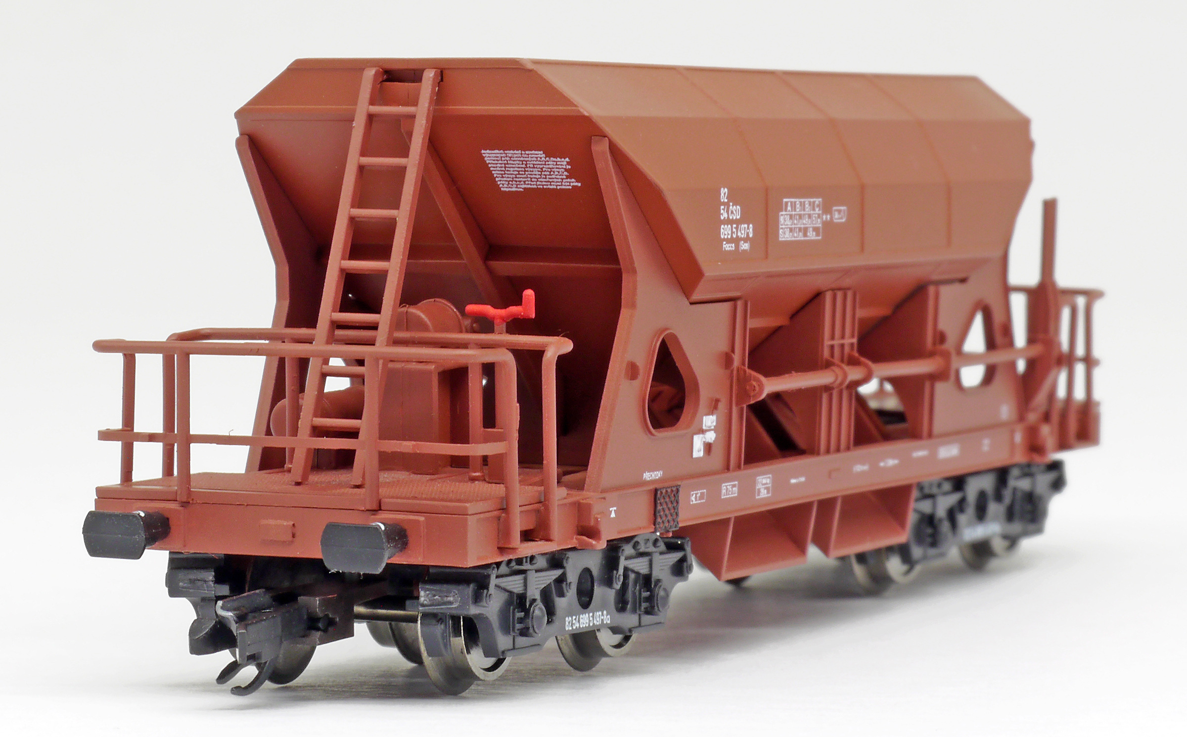 | nákladní samovýsypný vůz červenohnědý s černými podvozky |