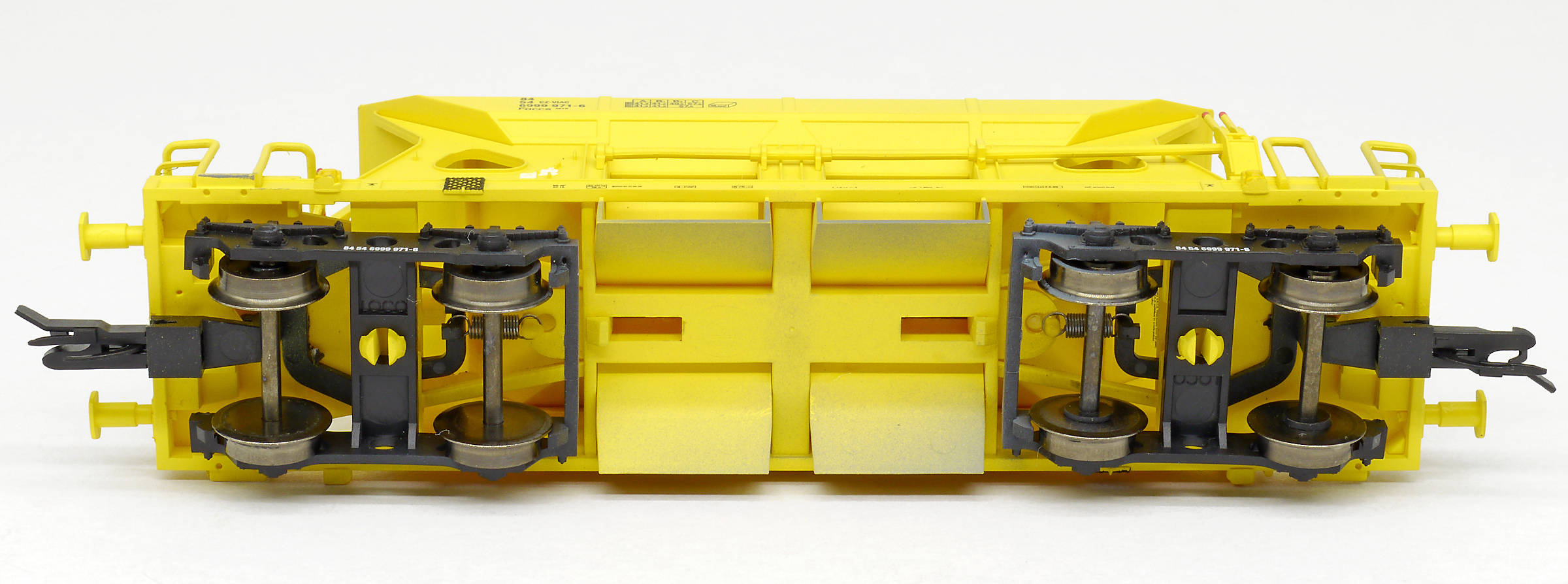 Kód   96500009  [Nákladní vozy] → [Samovýsypné] → [4-osé Faccs (Sas)] → 96500009: otevřený samovýsypný vůz žlutý s černým rámem