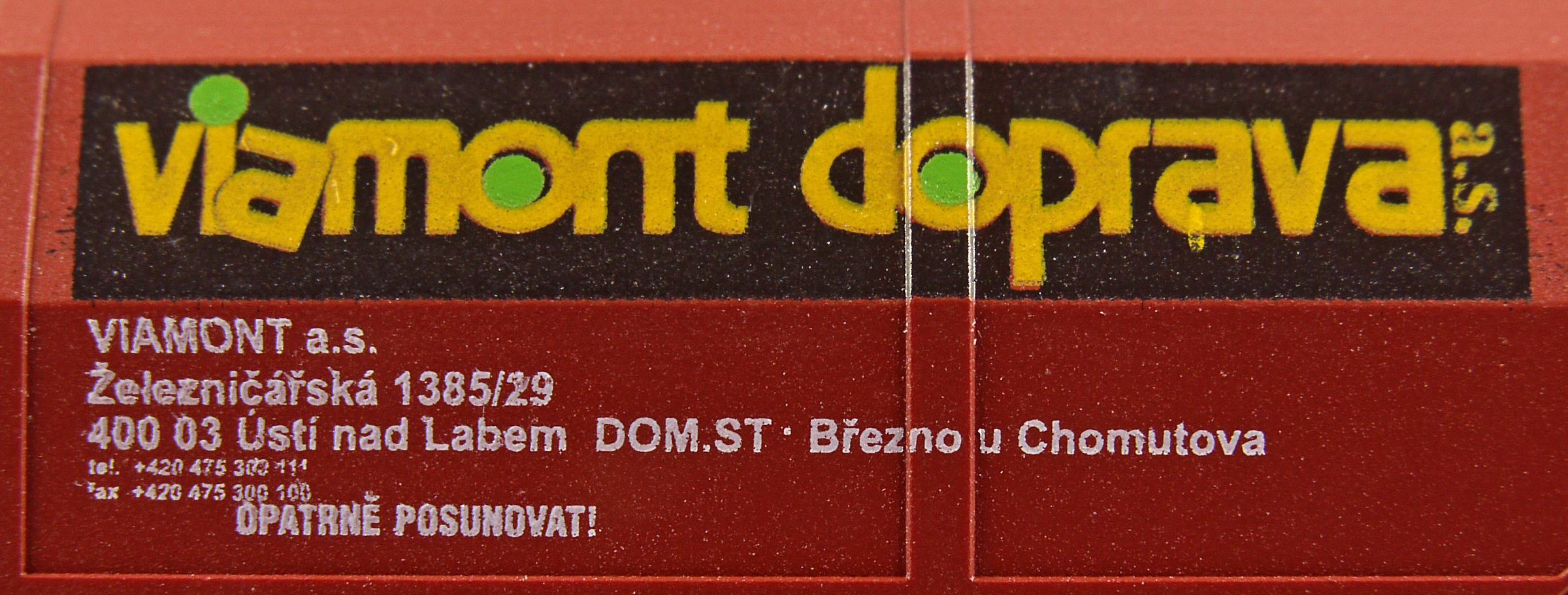 | nákladní samovýsypný vůz červenohnědý s nákladem „viamont doprava“ |