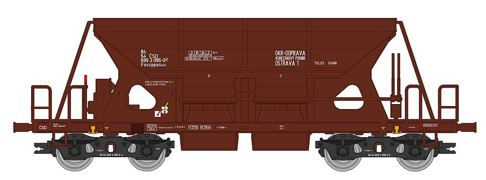 | otevřený samovýsypný vůz červenohnědý „OKD-DOPRAVA“ |