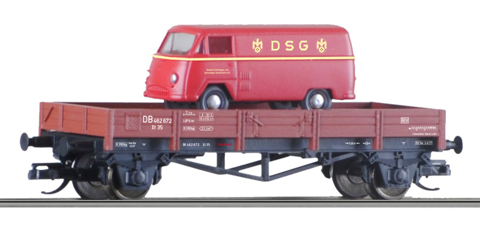 nízkostěnný nákladní vůz červenohnědý s nákladem dodávky Matador „DSG“