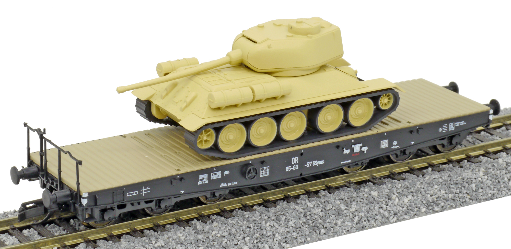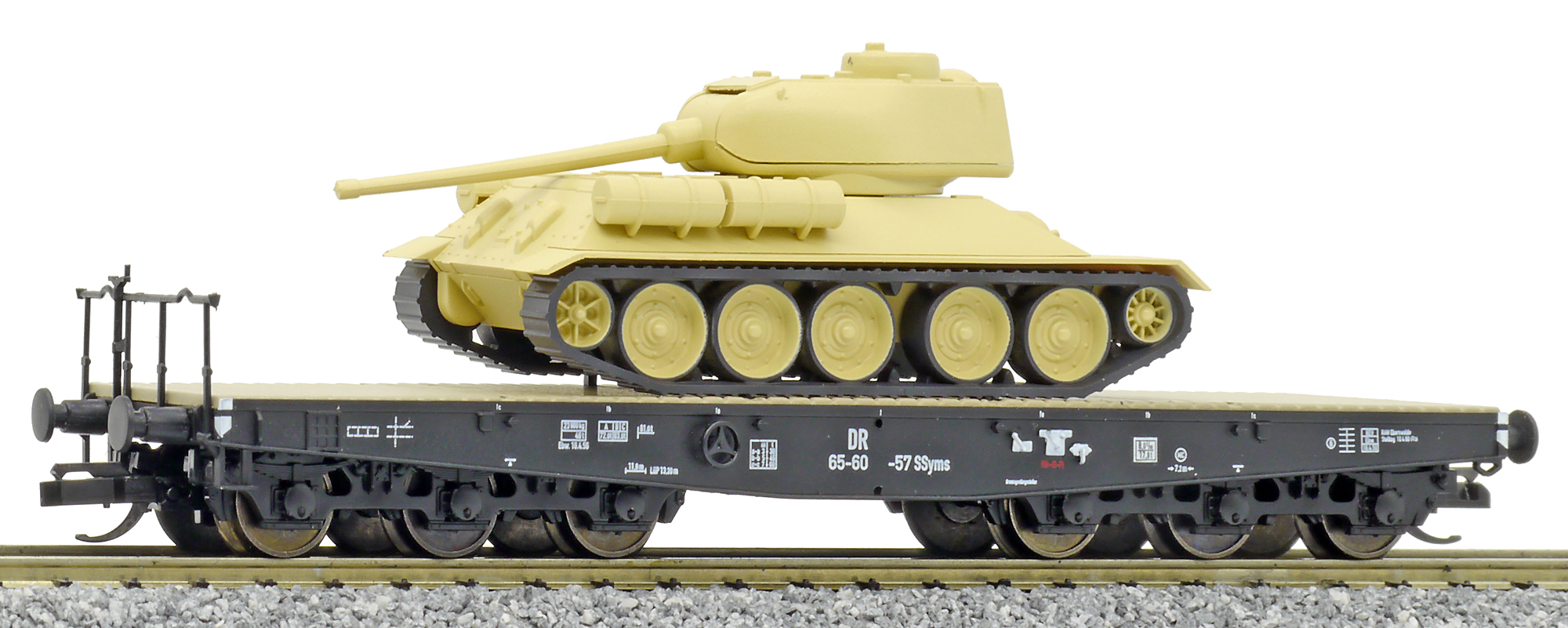 | plošinový vůz s nákladem tanku T34/85 |
