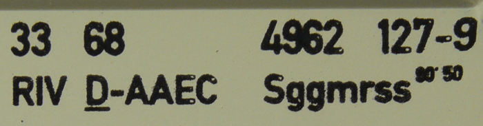 | • 33 68 4962 127-9 | → | upřesnění řady a pořadové číslo |