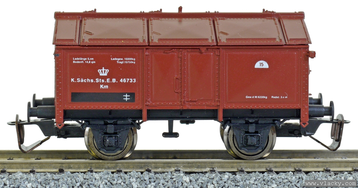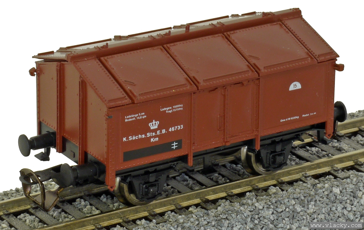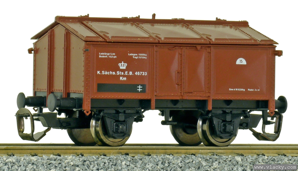 nákladní vůz červenohnědý s klapkami, černý pojezd