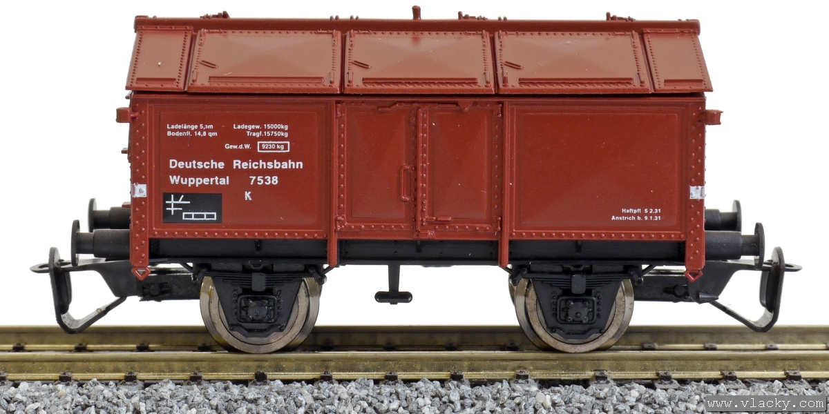 nákladní vůz červenohnědý s klapkami, černý pojezd