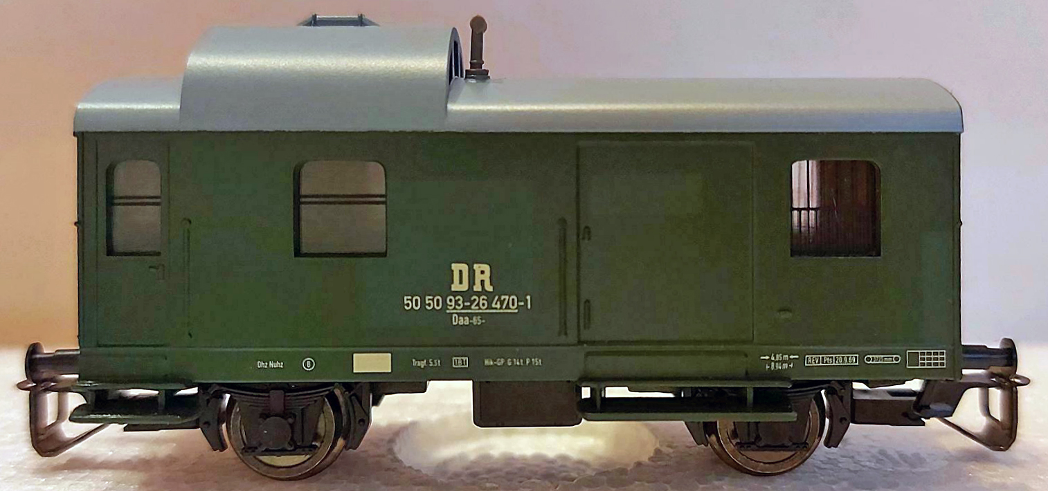 | zavazadlový vůz zelený s šedou střechou a se záplatami |