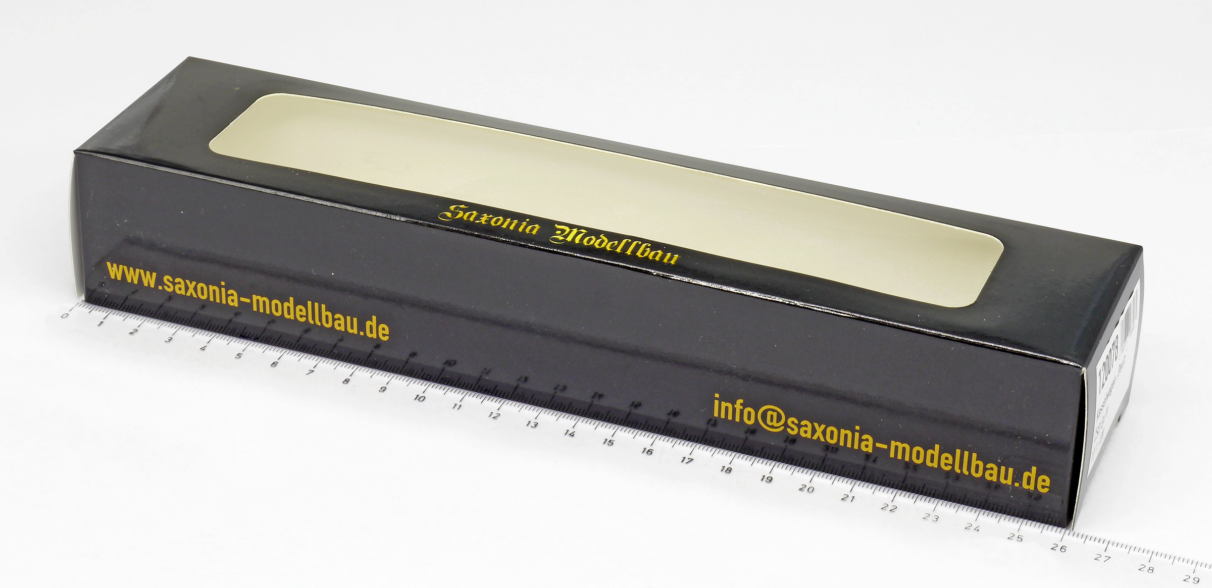 1. Saxonia Modellbau | 26 x 6 x 4,5 | papírová krabička s okénkem